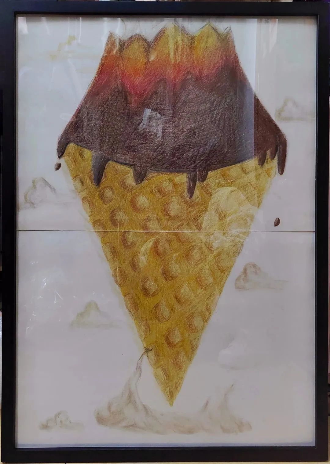 设计说明:作品是以元素A为夹子,元素B为建筑,利用了夹子A元素的真实面貌组合成新的建筑,可以从不同角度看,利用夹子做的这个建筑比一般建筑更具有通透性,仰视从建筑底下看,不在建筑里,又感觉身处建筑中。在作品中着重刻画夹子的细节,使其贴切,利用彩铅以及水彩的工具,让人们在图像化的时代驻足。