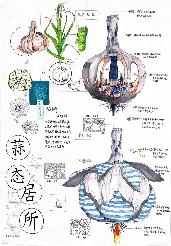 设计说明:大蒜形态恶劣环境的生命体建筑的概念对大蒜生长的结构进行剖析,此建筑分为两种形态:玩耍和警戒。