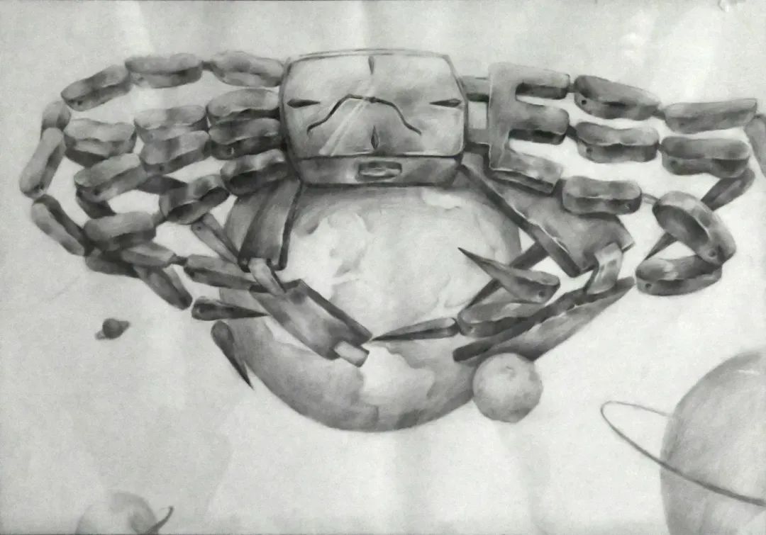 设计说明:通过利用元素A的特性,将其层层相夹形成如图的造形。其后通压黑提亮,阴影以及环境的衬托,营造出一种怪物的即视感。