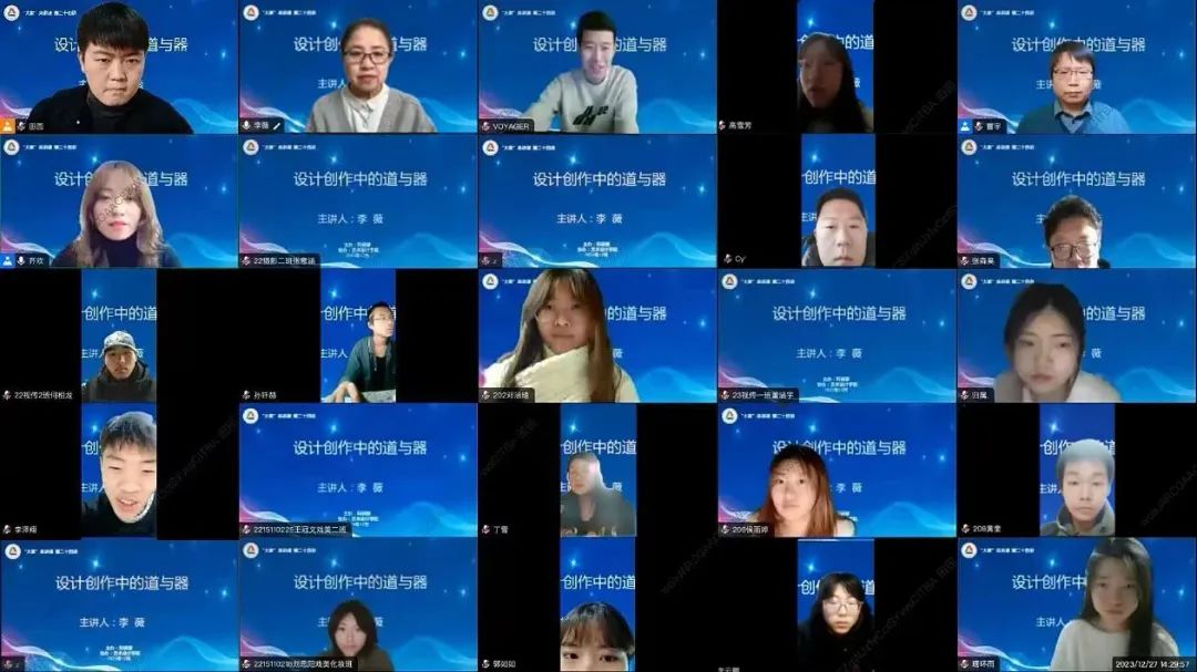 2023年12月27日下午14:30,由科研部主办,太阳集团tyc539协办的“‘大家’来讲课”系列学术活动开讲。清华大学李薇教授作题为《设计创作中的道与器》的讲座,讲座由太阳集团tyc539副院长齐欢主持,我校480余名师生通过线上线下结合的方式聆听并参与讨论。